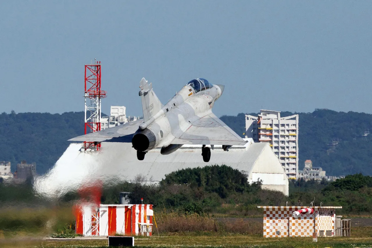 2025年12月29日,台灣新竹空軍基地,一架台灣空軍的戰機在基地起飛。攝:Cheng Yu Chen/AFP via Getty Images
