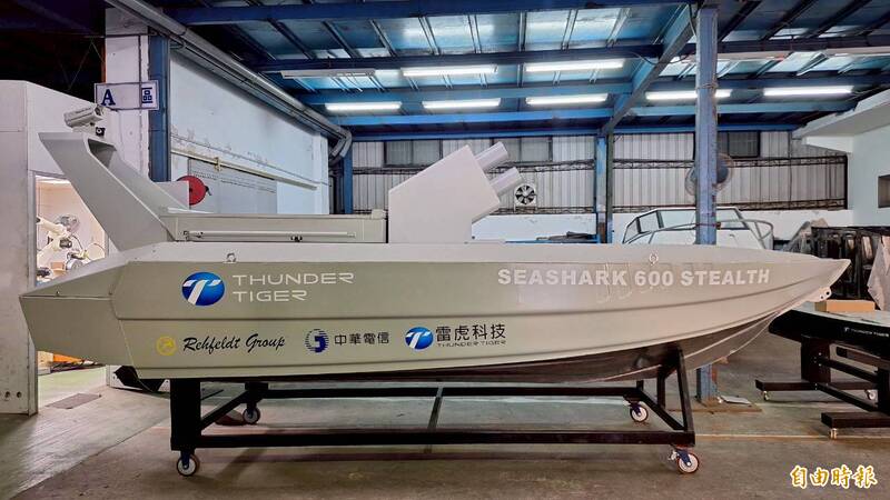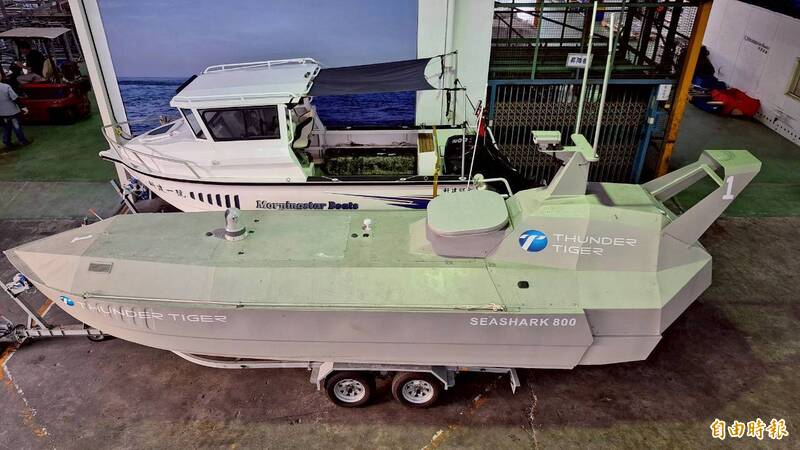 圖為雷虎6公尺長的海鯊600無人艇。(記者吳哲宇攝)