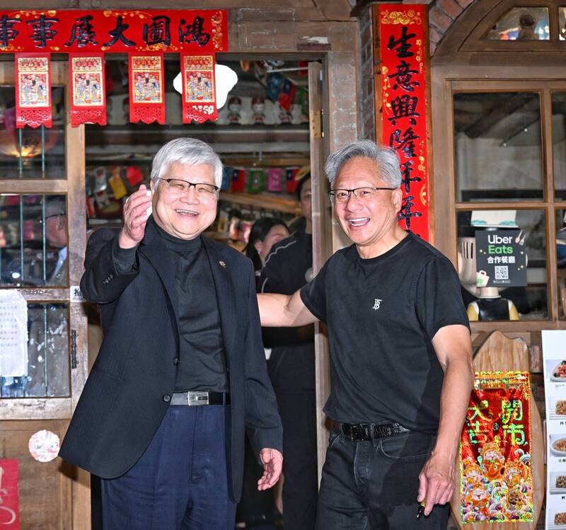 輝達執行長黃仁勳31日宴請台灣供應鏈老闆。(記者方賓照攝)